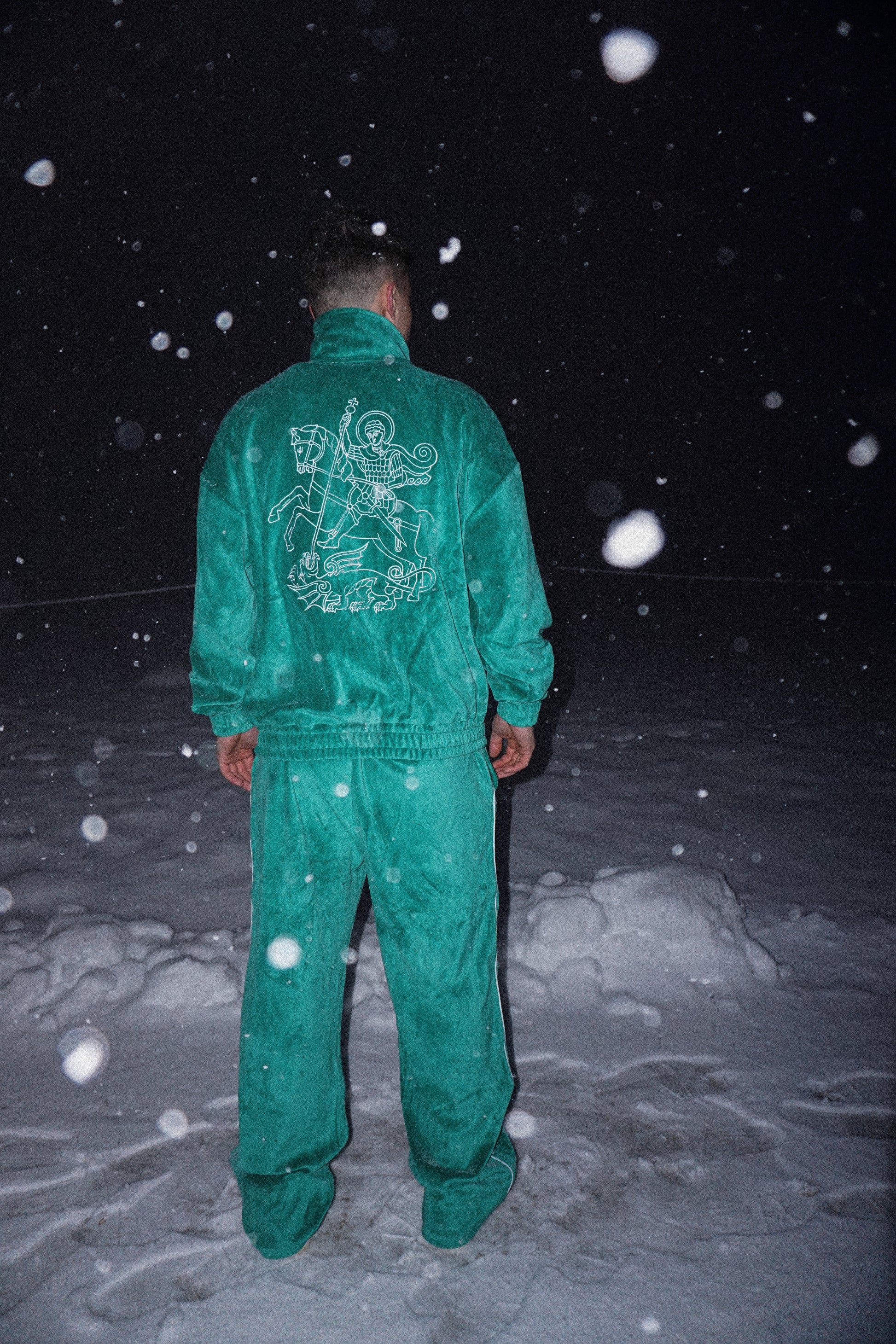 Introducing the exclusive Saint George Tracksuit, crafted from high-quality velour for a luxurious feel. Adorned with a delicate embroidery of Meurmia on the front and the iconic Saint George crest on the back, this tracksuit is limited to only XX pieces. Elevate your wardrobe with this rare and sophisticated set.